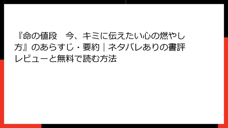 書籍「命の値段 今、キミに伝えたい心の燃やし方」の詳細なあらすじと要約(ネタバレ含む)
