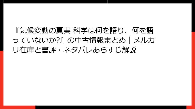『気候変動の真実 科学は何を語り、何を語っていないか?』の中古情報まとめ|メルカリ在庫と書評・ネタバレあらすじ解説