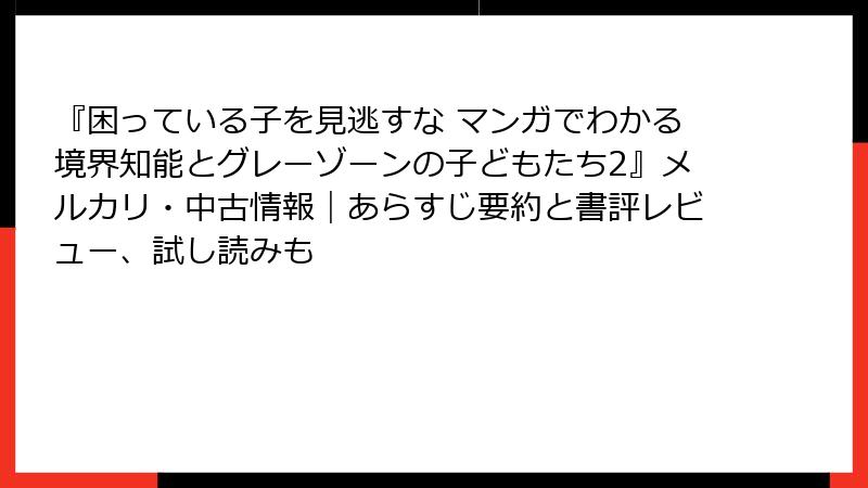 『困っている子を見逃すな マンガでわかる境界知能とグレーゾーンの子どもたち2』メルカリ・中古情報|あらすじ要約と書評レビュー、試し読みも