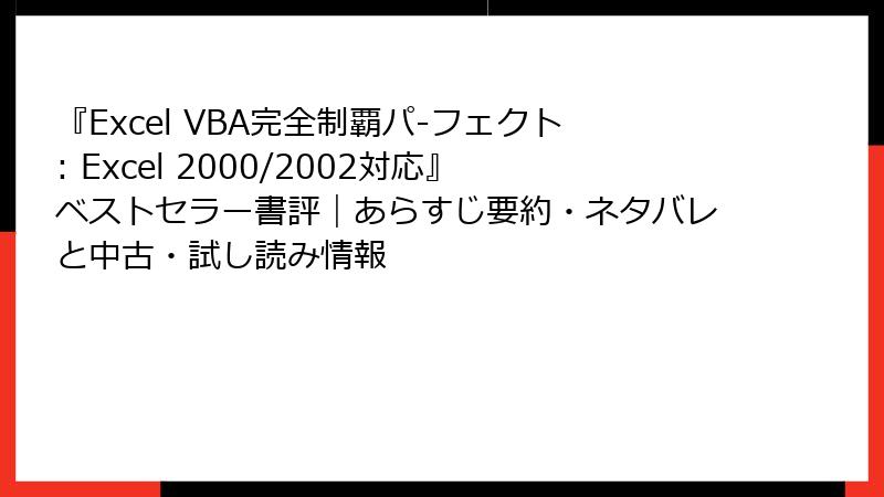 Excel VBA完全制覇パーフェクト: Excel 2000/2002対応のレビューと考察まとめ
