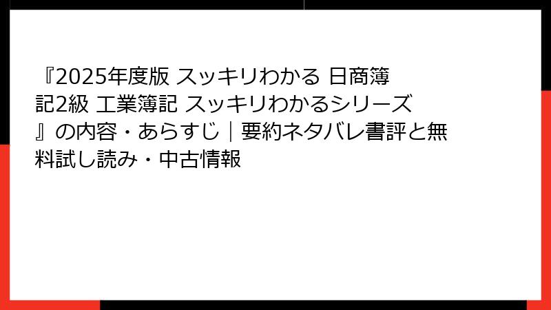 - 5星レビュー(2025年12月4日): 「工業簿記の必要最低限の知識は学習できます。あまり細かい論点まで書かれると逆に理解しづらくなるので、最初の1冊としてはこの内容で十分だと思います。」 – 初心者向けのシンプルさを評価。