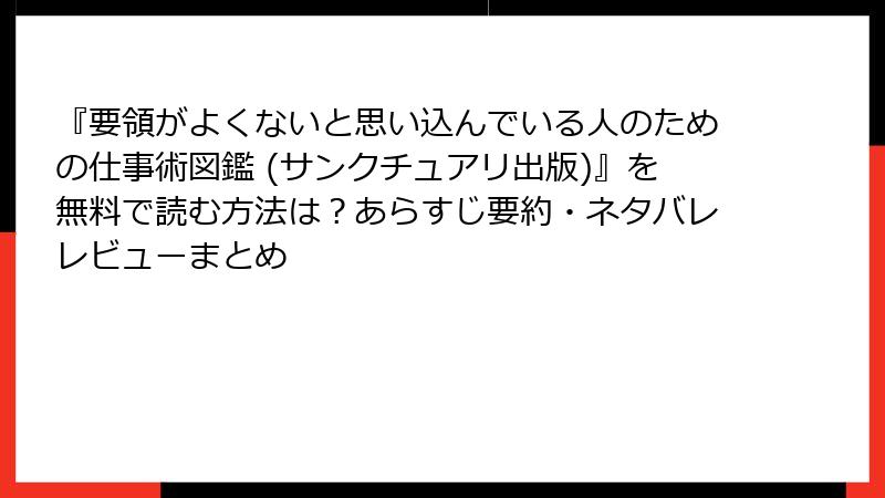 要領がよくないと思い込んでいる人のための仕事術図鑑:無料試し読みと中古版入手ガイド