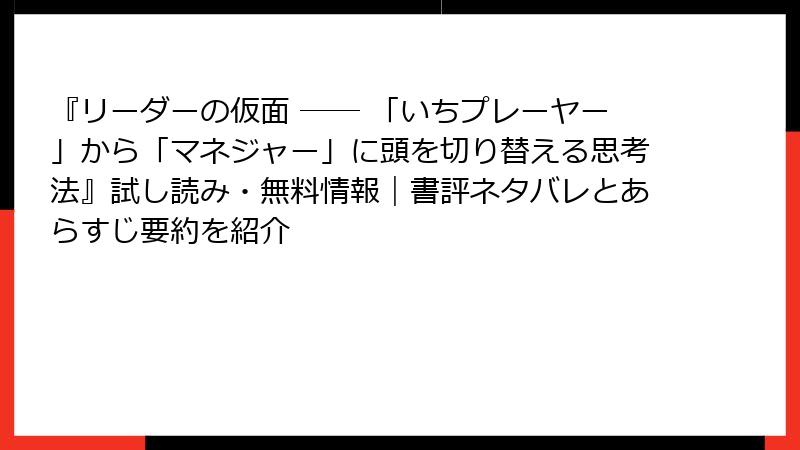 試し読みで読める範囲は通常序章+第1章の一部(約20〜30ページ程度)で、書籍の核心である「リーダーの仮面をかぶる」考え方や「錯覚」の話がしっかり確認できます。
