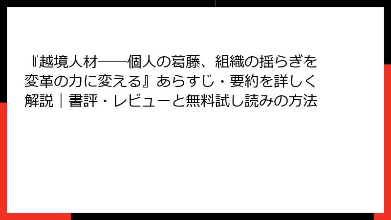 『越境人材――個人の葛藤、組織の揺らぎを変革の力に変える』を無料で試し読みする方法と中古本の入手ガイド