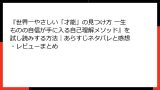 | 批判の種類 | 具体的な内容 | 該当する読者層 |