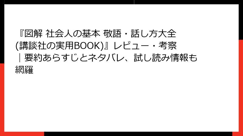 書評家や読者の考察では、この書籍が単なるマニュアルではなく、コミュニケーションの本質を教えてくれる点が評価されています。一つの書評では、「敬語は相手を尊重する心の表れ」との視点から、ビジネスパーソンの人間性を高めるツールとして位置づけ。図解の活用が記憶の定着を促し、クイズ形式の章が復習に有効だという分析もあります。ただし、批判的な考察として、「内容が濃い一方で、家でも手に取りやすい軽快さが欠けている」との指摘があり、娯楽要素の少なさがデメリットに挙げられます。全体として、書籍は社会人の基礎固めに最適ですが、読むタイミングや目的意識が重要という結論が多く見られます。たとえば、転職時や昇進前に読むと効果的とのアドバイスも。