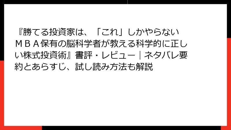 『勝てる投資家は、「これ」しかやらない MBA保有の脳科学者が教える科学的に正しい株式投資術』書評・レビュー|ネタバレ要約とあらすじ、試し読み方法も解説