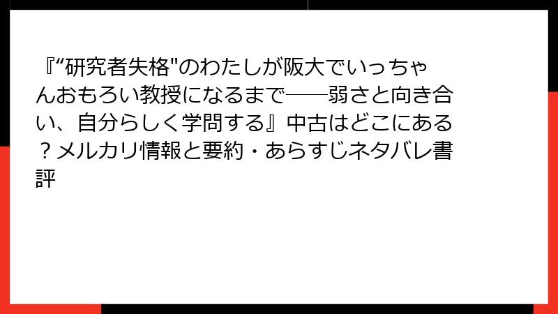 書籍「あらすじと要約: “研究者失格”のわたしが阪大でいっちゃんおもろい教授になるまで――弱さと向き合い、自分らしく学問する」