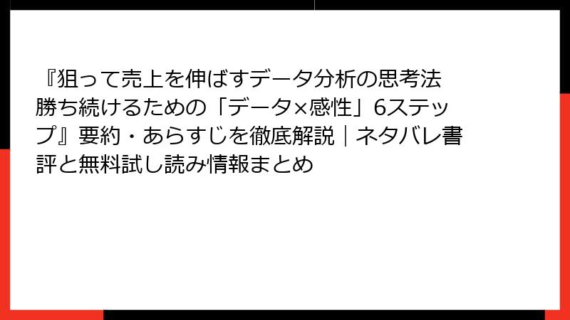 『狙って売上を伸ばすデータ分析の思考法』徹底要約:データ×感性で「勝ち続ける」6ステップの全貌