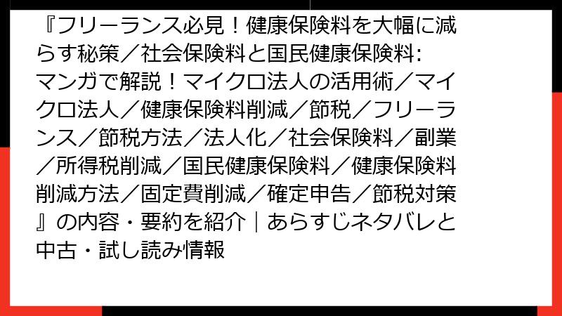 - フリーランス必見!健康保険料を大幅に減らす秘策/社会保険料と国民健康保険料: マンガで解説!マイクロ法人の活用術のあらすじ・詳細要約
