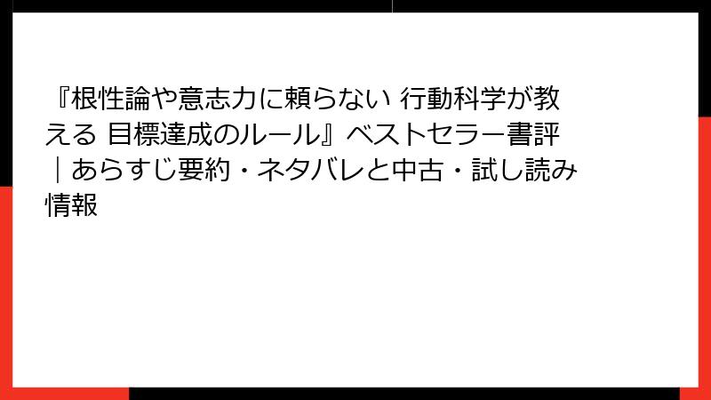 『根性論や意志力に頼らない 行動科学が教える 目標達成のルール』ベストセラー書評|あらすじ要約・ネタバレと中古・試し読み情報