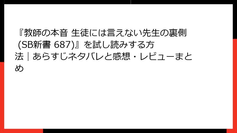 『教師の本音 生徒には言えない先生の裏側 (SB新書 687)』を試し読みする方法|あらすじネタバレと感想・レビューまとめ