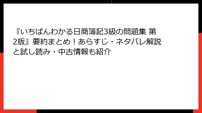 「いちばんわかる日商簿記3級の問題集 第2版」をお得に試す・中古でゲットする方法完全ガイド