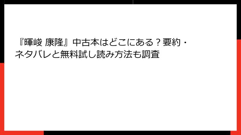 - Bookoffオンライン: 定価54%OFFの220円で販売。品質に注意して出品されており、全国配送対応。