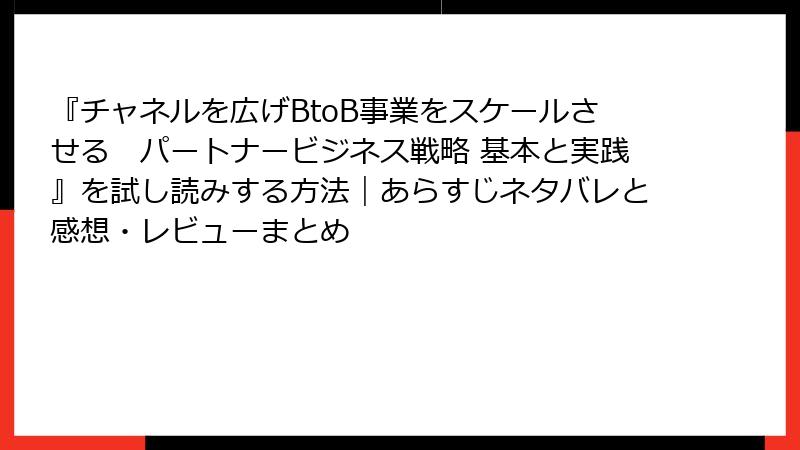『チャネルを広げBtoB事業をスケールさせる パートナービジネス戦略 基本と実践』を試し読みする方法|あらすじネタバレと感想・レビューまとめ