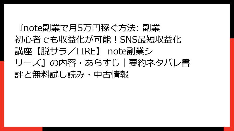 『note副業で月5万円稼ぐ方法』詳細なあらすじ・完全要約【ネタバレ全開】