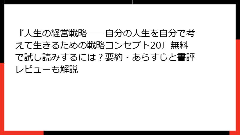 『人生の経営戦略――自分の人生を自分で考えて生きるための戦略コンセプト20』無料で試し読みするには?要約・あらすじと書評レビューも解説