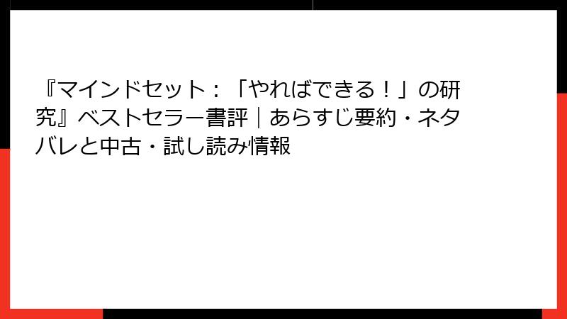 この書籍の人気と売れ行きは、科学的根拠に基づく実践的な内容に支えられています。ベストセラー状態を長く維持し、2025年も教育・ビジネス分野で影響力を発揮。読者がマインドセットを変えることで得られる価値が、継続的な需要を生んでいます。興味がある方は、まずは試し読みから始めてみてはいかがでしょうか。
