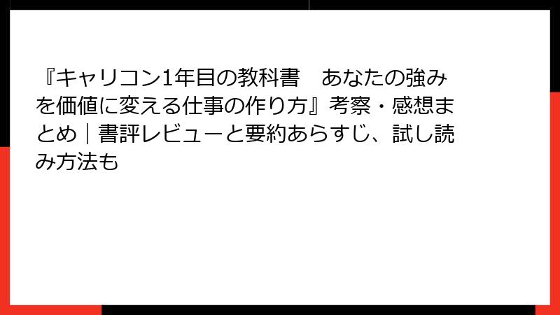これらの考察は、書籍が単なるハウツー本ではなく、キャリアの哲学を提供するものとして位置づけられています。SNSでは、書籍連動のコンサル感想が多く、理論を実務に落とし込むプロセスが共有され、読み応えのある議論を生んでいます。