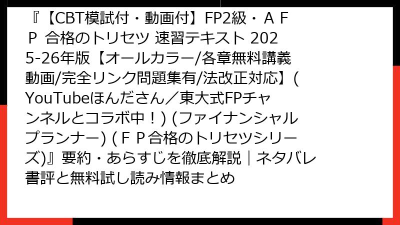 - FP2級・AFPを確実に一発合格したい人 → トリセツシリーズ。動画・模試・アプリの三位一体で効率最強。