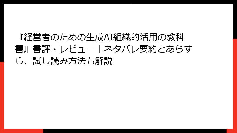 『経営者のための生成AI組織的活用の教科書』書評・レビュー|ネタバレ要約とあらすじ、試し読み方法も解説