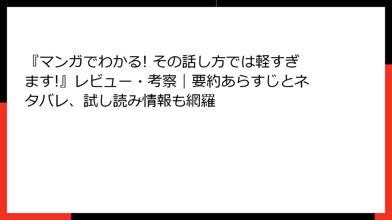 - マンガでわかる! その話し方では軽すぎます!のレビューと考察