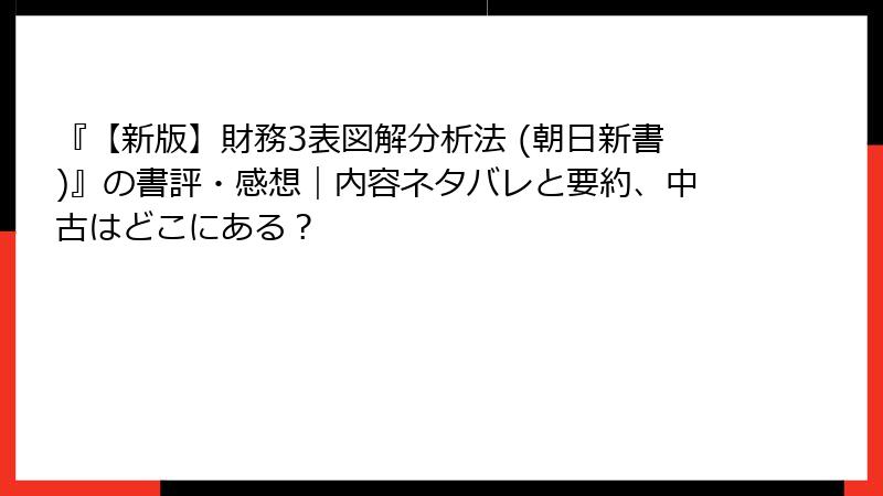 『【新版】財務3表図解分析法 (朝日新書)』の書評・感想|内容ネタバレと要約、中古はどこにある?