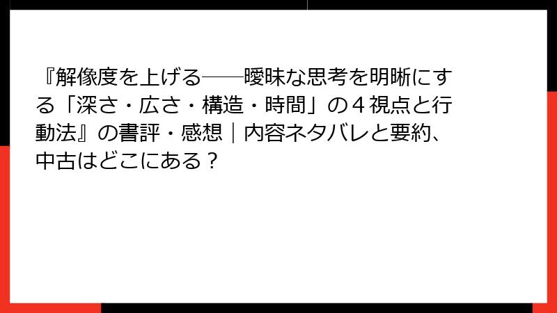 ### 解像度を上げる――曖昧な思考を明晰にする「深さ・広さ・構造・時間」の4視点と行動法