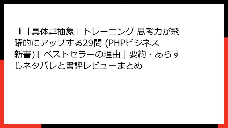 - 「タイトル詐欺レベルで内容が濃い!土俵を変える発想が衝撃的」(ブログ書評多数)