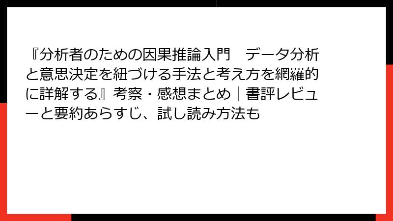 『分析者のための因果推論入門 データ分析と意思決定を紐づける手法と考え方を網羅的に詳解する』考察・感想まとめ|書評レビューと要約あらすじ、試し読み方法も