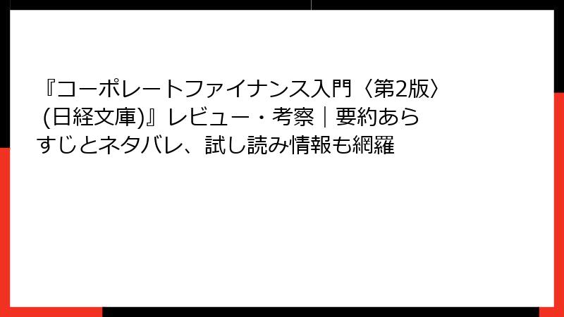 『コーポレートファイナンス入門〈第2版〉 (日経文庫)』レビュー・考察|要約あらすじとネタバレ、試し読み情報も網羅