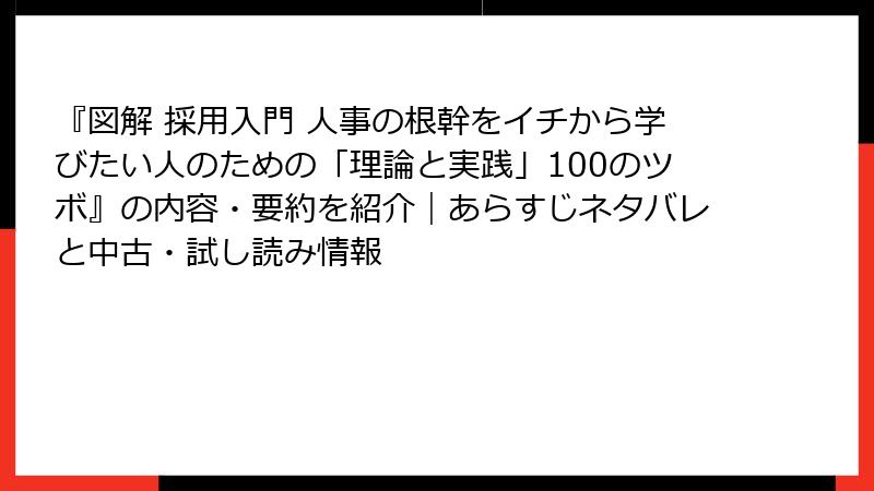 『図解 採用入門 人事の根幹をイチから学びたい人のための「理論と実践」100のツボ』の内容・要約を紹介|あらすじネタバレと中古・試し読み情報