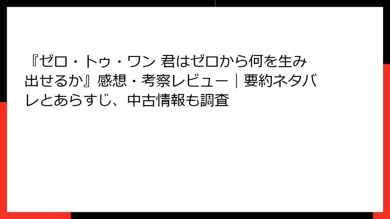 - ゼロ・トゥ・ワン 君はゼロから何を生み出せるか:スタートアップの神本。