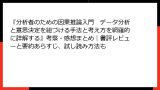「初心者には難易度が高い」 パラパラ見ただけでは専門用語とグラフだらけでハードルが高く見える。実際に読み進めても後半の多変量解析や機械学習部分は「ガチすぎる」と感じる人がいる。 完全な超初心者