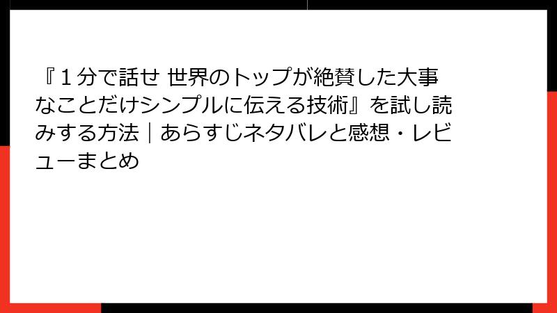 『1分で話せ 世界のトップが絶賛した大事なことだけシンプルに伝える技術』を試し読みする方法|あらすじネタバレと感想・レビューまとめ