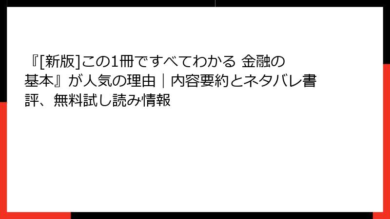 | [新版]この1冊ですべてわかる 金融の基本 | ロングセラー | 金融新入社員・未経験者 | ★★★★☆ | 安定継続 |