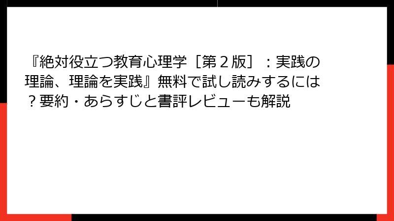 『絶対役立つ教育心理学[第2版]:実践の理論、理論を実践』無料で試し読みするには?要約・あらすじと書評レビューも解説