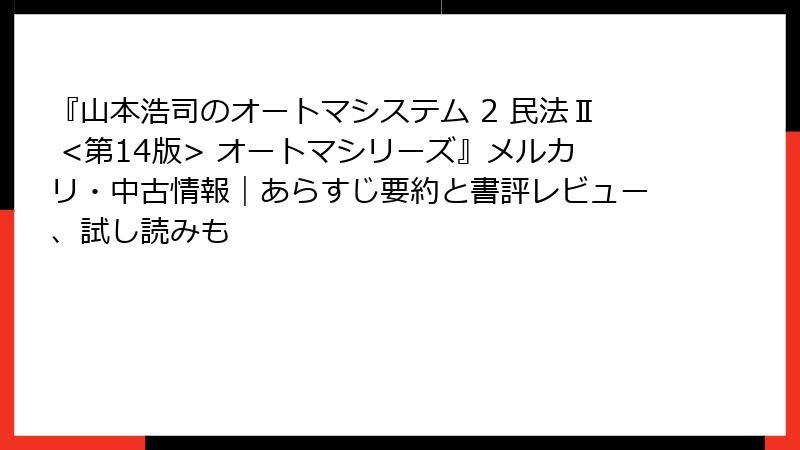 山本浩司のオートマシステム 2 民法Ⅱ 第14版 の試し読みと中古情報