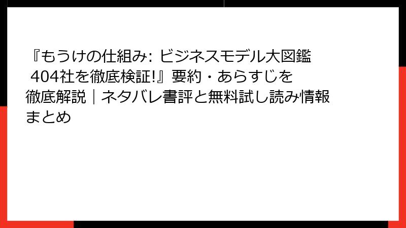 『もうけの仕組み: ビジネスモデル大図鑑 404社を徹底検証!』要約・あらすじを徹底解説|ネタバレ書評と無料試し読み情報まとめ
