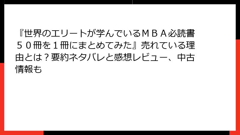 2025年現在、ビジネス書は中古市場が成熟しており、Kindle試し読みも標準装備。賢く組み合わせれば、数百円で高評価の本を手に取れます。気になる一冊から、ぜひお試しください!