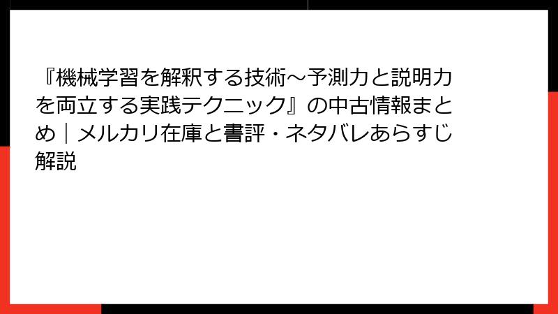 『機械学習を解釈する技術〜予測力と説明力を両立する実践テクニック』の中古情報まとめ|メルカリ在庫と書評・ネタバレあらすじ解説