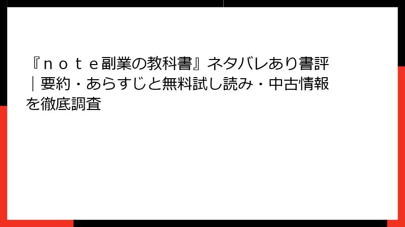 | 書籍タイトル | 著者 | 核心のポイント(ネタバレ含む) |