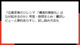 逆に「優しい語り口の本が好き」「体系的な教科書が欲しい」「コンサルのイメージが苦手」という人は、最初から期待値を調整するか、他のビジネス書から入った方が無難かもしれません。
