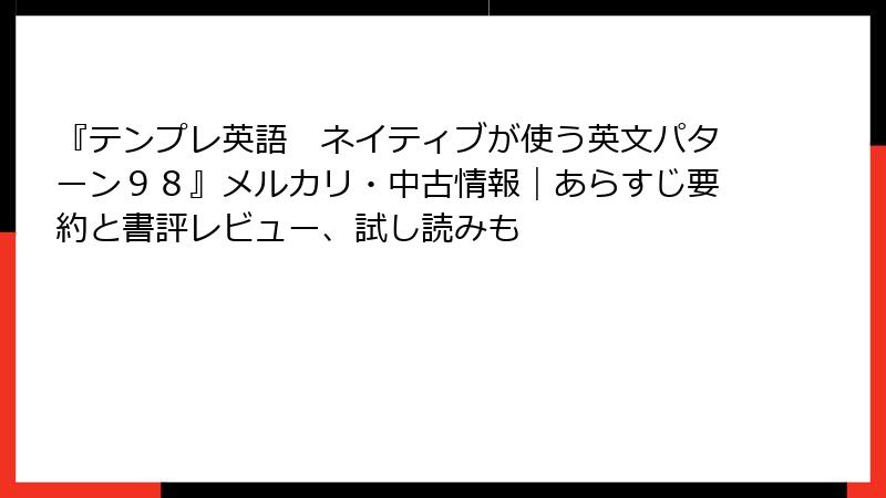 『テンプレ英語 ネイティブが使う英文パターン98』メルカリ・中古情報|あらすじ要約と書評レビュー、試し読みも