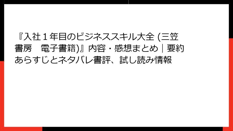 結論:**「コンサル思考をインストールしたいなら必読」**、ただし**「文体が合わないかも」と覚悟して**手に取るのが吉。2026年現在も、若手ビジネスパーソンの「バイブル」として君臨し続けている一冊です。