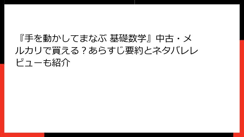 『手を動かしてまなぶ 基礎数学』中古・メルカリで買える?あらすじ要約とネタバレレビューも紹介