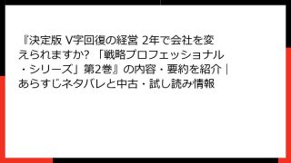 『決定版 V字回復の経営 2年で会社を変えられますか? 「戦略プロフェッショナル・シリーズ」第2巻』の内容・要約を紹介|あらすじネタバレと中古・試し読み情報