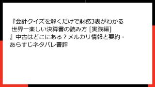 『会計クイズを解くだけで財務3表がわかる 世界一楽しい決算書の読み方 [実践編]』中古はどこにある?メルカリ情報と要約・あらすじネタバレ書評