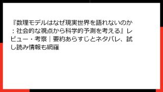 『数理モデルはなぜ現実世界を語れないのか:社会的な視点から科学的予測を考える』レビュー・考察|要約あらすじとネタバレ、試し読み情報も網羅
