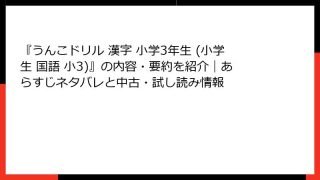 『うんこドリル 漢字 小学3年生 (小学生 国語 小3)』の内容・要約を紹介|あらすじネタバレと中古・試し読み情報